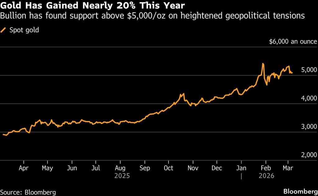 Le métal précieux a été mis sous pression cette semaine alors que le conflit au Moyen-Orient a fait grimper les prix du pétrole et alimenté les craintes d’inflation, tandis que le dollar a rebondi. Un dollar plus fort et des coûts d’emprunt plus élevés sont généralement négatifs pour l’or. Le lingot a également servi de source de liquidités dans un contexte de déroute croissante des actions mondiales.